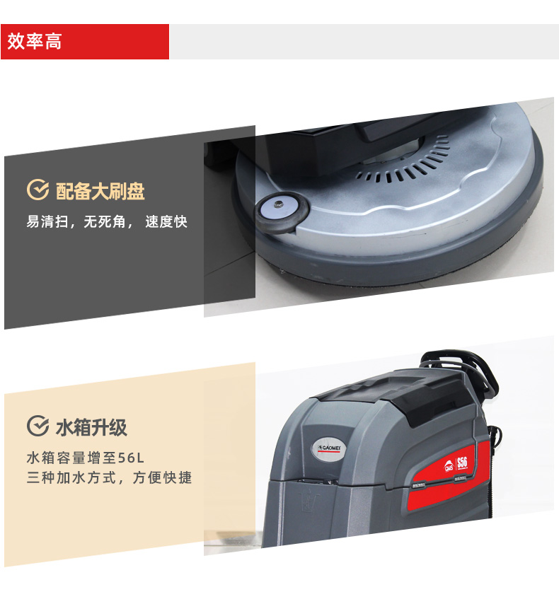 高美S56智慧型手推式電瓶洗地機,一款搭載智慧清潔系統(tǒng)的智能型洗地機,具備大刷盤、操作簡單,洗擦、吸干一次性完成,適用于2000